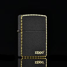 zippo煤油打火机官正品美国芝宝经典黑色磨砂皱纹黑裂漆凿边商标