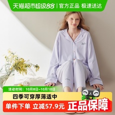 芬腾新款睡衣女士春秋款纯棉长袖夏大码冬季可外穿全棉家居服套装