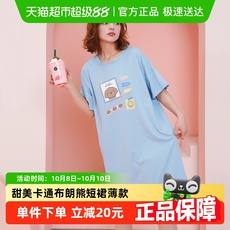 芬腾睡裙女士夏季薄款短袖纯棉大码可爱睡衣家居服全棉女款连衣裙