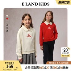 eland kids衣恋童装女童卫衣春秋季休闲毛巾刺绣拼色花边翻领上衣