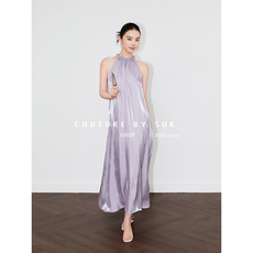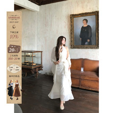 安妮不火 梨云坠诗笺气质立体花朵挂脖裙女夏微胖大码法式连衣裙