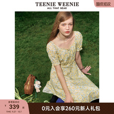 TeenieWeenie小熊夏季轻薄方领碎花连衣裙法式泡泡袖复古花朵短裙