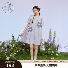 紫涵海军领娃娃裙女夏季新款甜美减龄休闲立体花朵抽褶短袖连衣裙