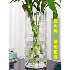 富贵竹圆柱玻璃筒北欧仿特大号花瓶塑料落地透明客厅直插花家用