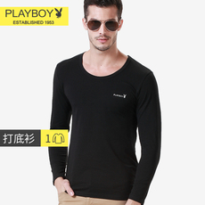 花花公子男士t恤修身春秋装纯棉薄款t恤长袖圆领打底衫上衣潮牌