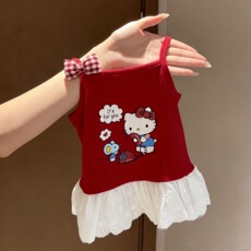 夏季韩版女童hellokitty吊带背心儿童宝宝洋气拼接花边无袖上衣