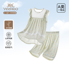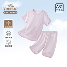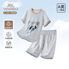 英氏儿童睡衣男女童短袖短裤A类优可丝春夏季薄款透气家居服套装