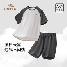 英氏儿童睡衣男孩夏季薄款天丝短袖短裤分体套装a类家居服空调服