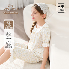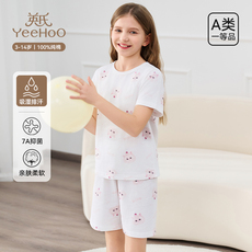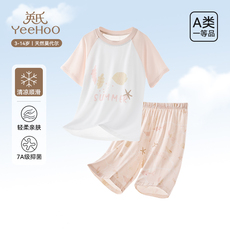 英氏莫代尔儿童睡衣男女童春夏季薄款短袖短裤套装女孩家居服a类