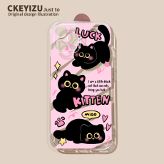 适用于苹果15手机壳超薄iPhone14plus小黑猫13promax透明软11/12mini防摔7/8全包se3趣味xsmax硅胶6卡通15pro