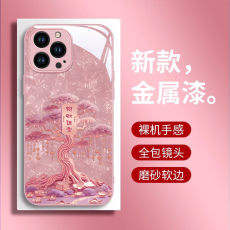 适用苹果16promax手机壳新款iphone15pro玻璃14防摔13可爱女12网红xsmax发财树8plus专用7p高级感6s全包se2潮