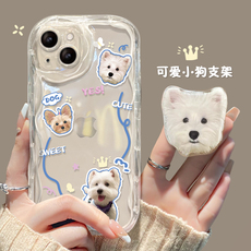 适用于苹果15手机壳新女款iPhone14promax/16防摔13/12mini透明xs/xr小狗支架11/7plus奶油纹8软硅胶6s保护套