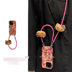 棕色小熊适用苹果15手机壳12pro新款女iPhone14proMAX全包8p防摔13mini腕带xs挂绳7plus斜跨6s斜挎挂脖xr背带