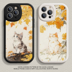 适用苹果17手机壳iPhone14promax新款12mini落叶猫咪16pro液态8plus7p硅胶xr可爱xsmax软x男14plus女6保护套5