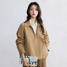 茵曼复古卡其色立领夹克外套2026春女装工装风宽松短款上衣