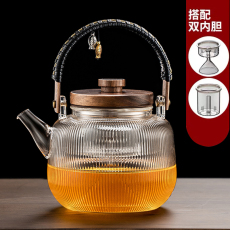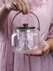 侧把茶壶玻璃煮茶器单壶耐高温木把过滤电陶炉泡茶壶功夫茶具套装
