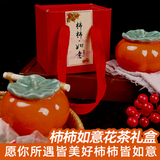 柿柿如意柿子陶瓷茶叶罐可定logo礼品定制礼盒装高档礼品伴手礼