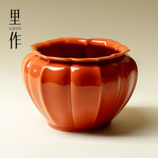 尚器 满山红赭石釉古钵建水手作复古红色茶洗茶渣斗废水缸古朴