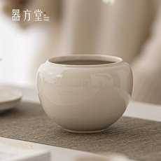 中式茶洗大号复古家用水盂茶渣缸笔洗陶瓷杯洗仿柴烧建水茶道配件