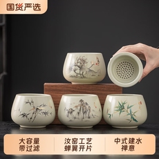 带过滤茶渣缸陶瓷家用桌面水盂建水汝窑茶水缸废水桶茶洗茶道配件