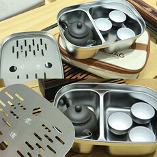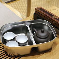 一壶两杯不锈钢小茶盘便携户外阳台长方形沥水盘办公工位单人壶承