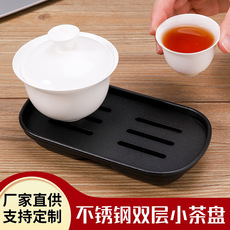 特厚不锈钢圆形茶盘家用办公户外便携小茶台双层储水式简约沥水盘