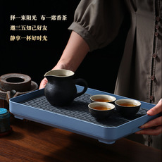 独饮小型迷你茶盘一人用户外禅意长方形石材托盘功夫茶具干泡台