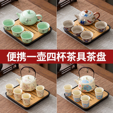 旅行功夫茶具小套装户外车载便携收纳简约茶盘陶瓷泡茶壶茶杯送礼
