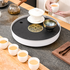 潮汕功夫茶具小号陶瓷纯白茶盘储水圆形托盘茶海家用户外公寓酒店