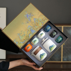 国潮文创茶具小套装家用功夫茶杯陶瓷泡茶壶户外露营茶盘伴手礼品