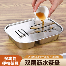 便携茶盘沥水盘不锈钢家用户外沥储水式茶台功夫茶具套装干泡托盘