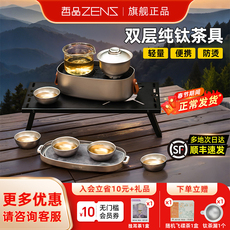 岛奇钛化露营户外旅行食品级茶具便携套装防烫茶杯分离泡茶壶茶盘