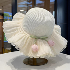 儿童帽子夏季女童大檐遮阳沙滩渔夫帽女宝公主大檐防晒太阳草帽夏