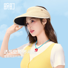 草编空顶帽女夏季出游防晒帽防紫外线遮阳帽沙滩度假踏青无顶草帽