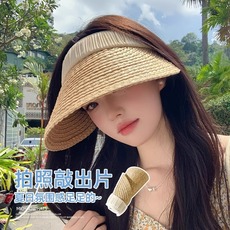 草编遮阳空顶帽子女夏季沙滩度假无顶太阳帽户外遮脸发箍防晒草帽
