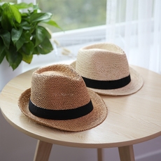 儿童草帽小礼帽夏季薄款巴拿马防晒遮阳帽子大帽檐男孩海边女沙滩