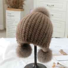 水貂毛编织可爱护耳帽子女冬季保暖休闲亲子狐狸毛球真毛皮草帽