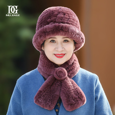 獭兔毛帽子女冬季2025中老年奶奶帽加厚保暖妈妈皮草围巾皮草帽子