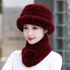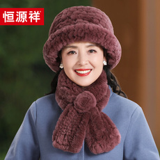 恒源祥獭兔毛帽子女士冬季中老年人奶奶帽老太太妈妈围巾皮草帽子