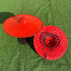 竹编红色花腰傣斗笠帽翘边成人儿童民族舞蹈表演傣族服装道具草帽