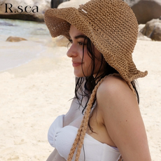 Rsea大帽檐可折叠草帽手工编织海边遮阳太阳帽