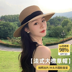法式海滩大帽檐草帽女款大码太阳帽2025新款遮阳礼帽草编平顶防晒