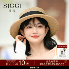 siggi 平顶草帽女夏季复古法式礼帽海边防晒帽子可折叠草编遮阳帽