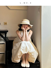 蓝墨竹L.MOZ新款草编帽子夏季法式拉菲赫本风草帽遮阳防晒显脸小