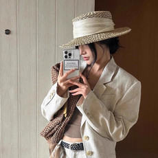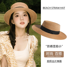 平顶礼帽女士夏季法式时尚2025新款草编太阳帽子海边防晒遮阳草帽
