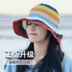 花儿与少年迪丽热巴同款帽子彩虹草帽渔夫帽海边遮阳防晒太阳帽夏