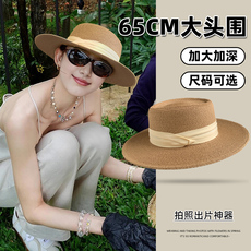 疯帽子 时尚法式平顶遮阳草帽女 海边度假太阳帽礼帽春夏 大头围