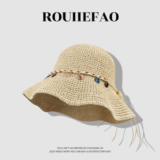 ROUIIEFAO草编遮阳渔夫帽女2025新款夏季海边度假防晒草帽太阳帽