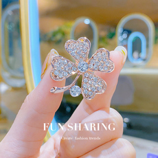 满钻四叶草胸针高档女优雅气质西装别针配饰防走光针扣连衣裙装饰
