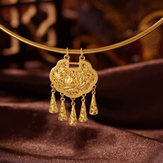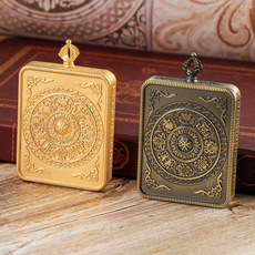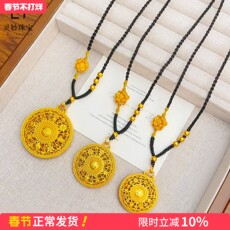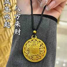 新款金色八宝罗盘吊坠女士镂空莲花福字项链古法金色罗盘挂坠